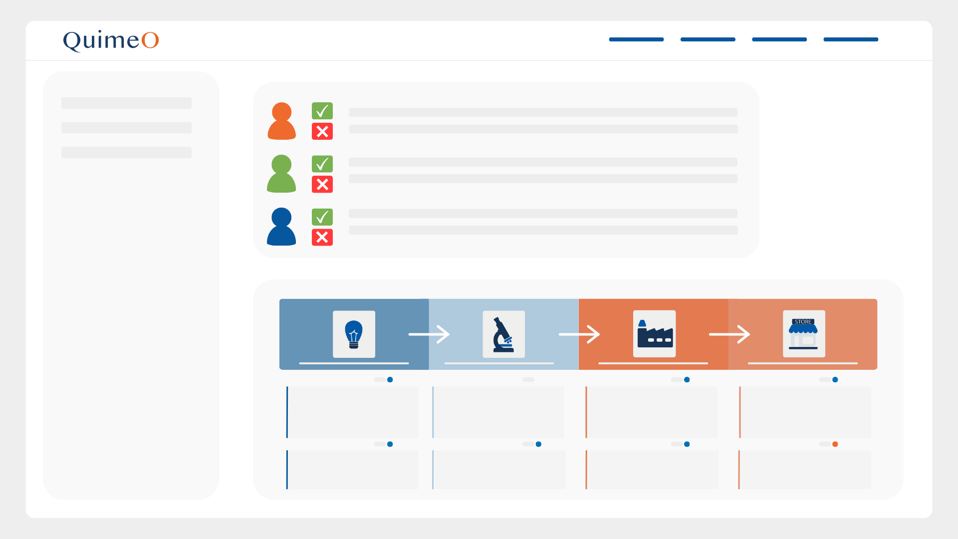 To facilitate team management and give users better visibility on the project progress, QuimeO allows the exchange of information, data updating,and decision-making between stakeholders (document sharing, instant messaging, validation workflow, …). The application centralizes all information to support teams and to share best practices. However, and, but, so, because, features.